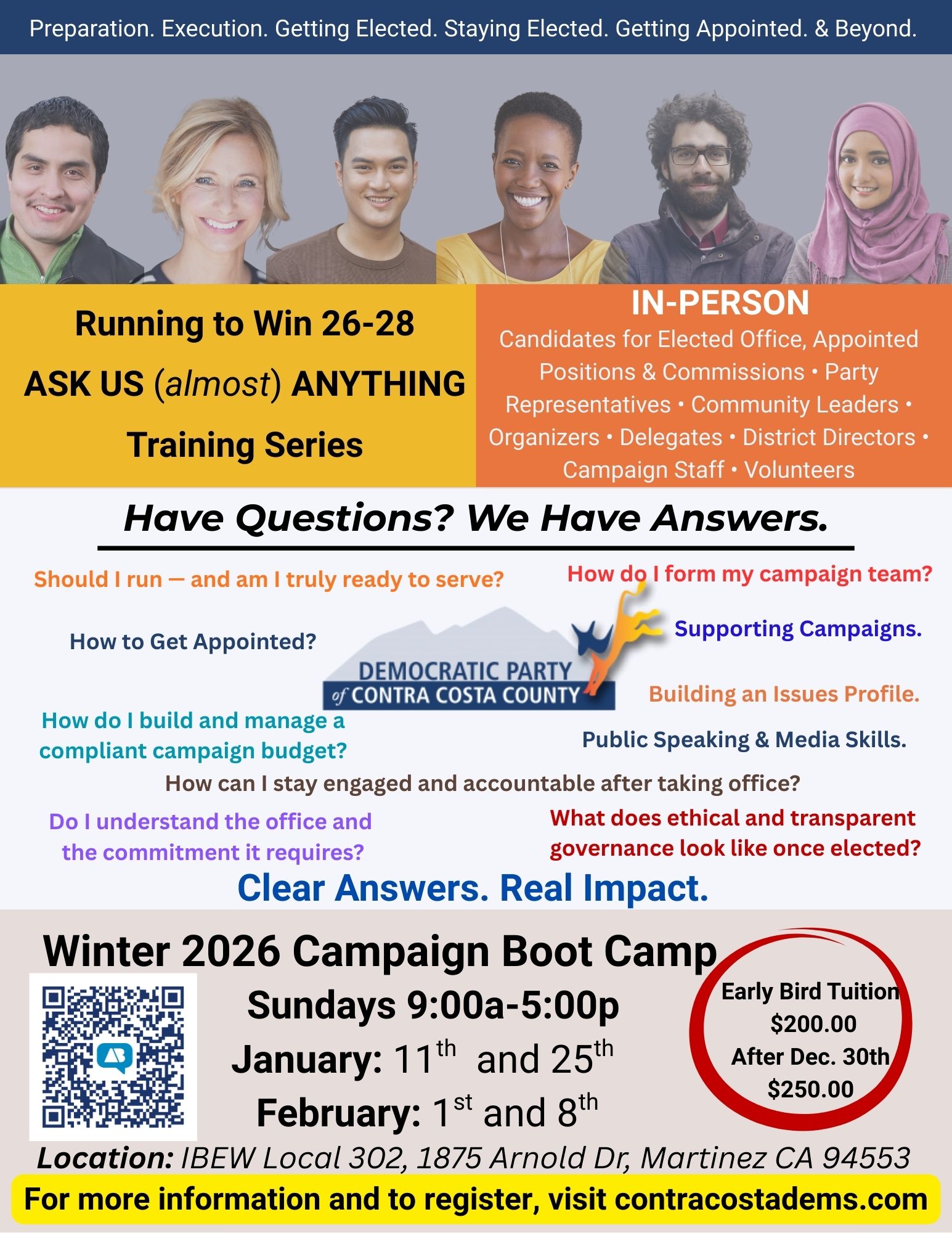 It’s the perfect training for any interest in being involved in politics – campaign managers, elected officials, candidates commissioners, volunteers, anyone!